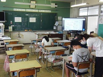 集中して取り組んでいます。ペアやグループによる学び合いでの学習ができない今ですが、正善小の子供たちは頑張っています。