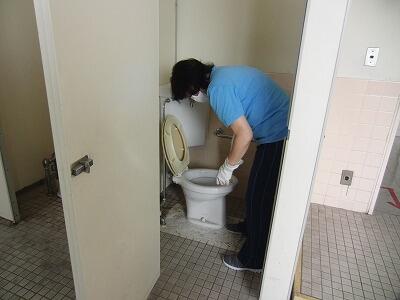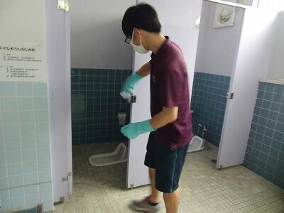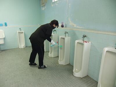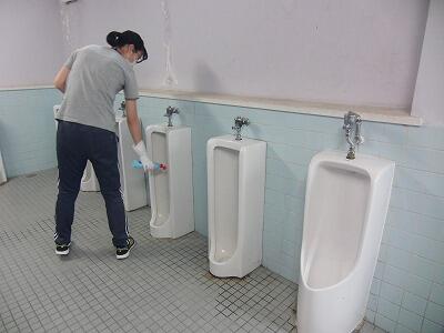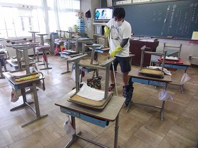 正善小のみなさんが下校した後には、先生方で消毒を行っています。
