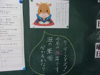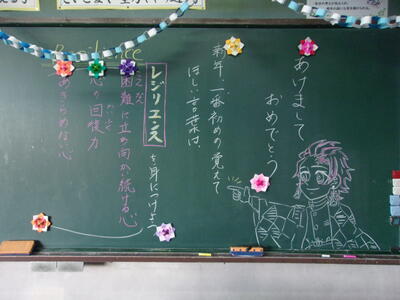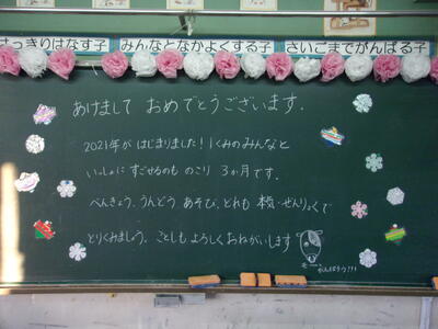 各教室の黒板には、3学期の目標に向けて担任の先生からのメッセージが書かれていました。