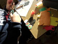 いろいろな形の箱を組み合わせて作品にしています。箱の形の特徴を生かして、恐竜や動物などを作っています。