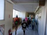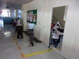 火災発生の連絡から、避難をするまでの経路を確認したのち、防火扉の通り方を体験しました。