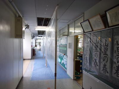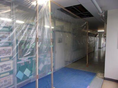 今日から2月末まで、家庭科室水道管の工事のために、職員室前廊下の通行にご不便をおかけします。