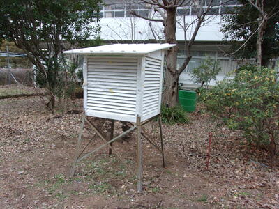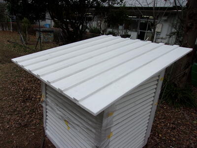 劣化により、屋根や側面の損傷がひどくなってきた百葉箱を、用務員さんが修理してくれました。