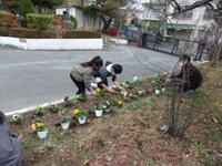 春日部市の緑化推進事業の取組で、学校にパンジーの花苗を80ポットいただきました。