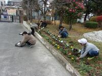 おかげで、正門前の花壇がとても華やかになりました。ありがとうございました。