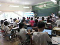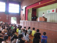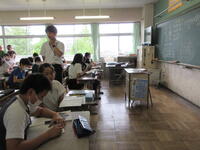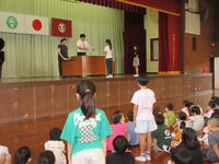 (↓開校式は、当日の時間短縮、暑さ対策のため、昨日の放課後に校舎内で行いました。)