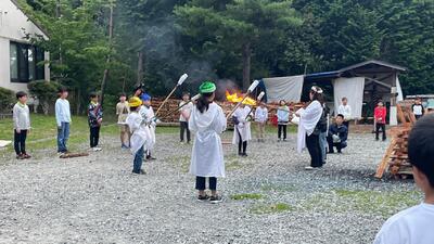 ↓ このあと、炎を囲んで、歌やダンスで楽しみます。