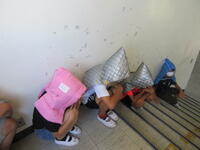 学級でシェルターを作り、身を守る態勢を確認しました。