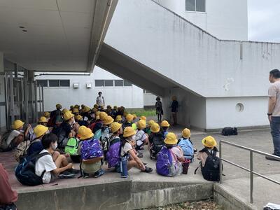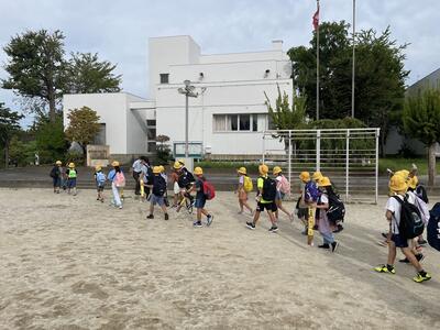 本日は熱中症危険回避のため、校庭への避難はせず、