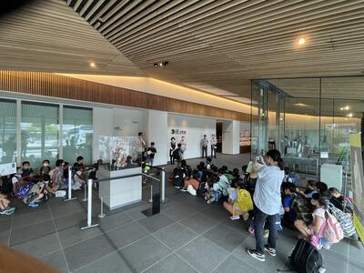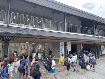 13:45 新江ノ島水族館です。班行動を終えて、最終チェックポイントの水族館に各班が到着しています。