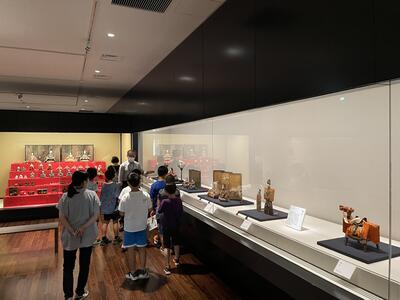 13:20 見学が始まりました。映像や展示物を見ながら、説明を聞いています。