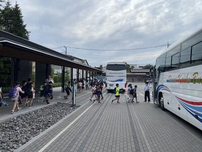 12:25 すべての予定を終了して、小田原城を出発しました。バスは学校へ向かいます。学校到着は16時ごろとなる予定です。
