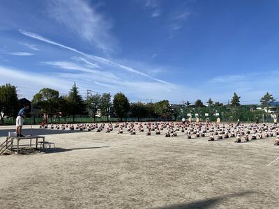 18日(水)、今日は晴れた空のもと、朝から1校時までの時間を使って、運動会の全体練習が行われました。授業時間を使っての全体練習は、今回の1時間のみで、同時に全体練習の仕上げとなります。