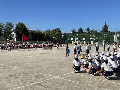 運動会に向けて、全体練習が始まりました。これまでクラスや学年で運動会に向けて準備や練習に取り組んできましたが、今日からは全体での練習を行っていきます。