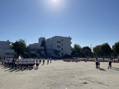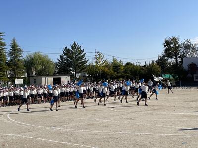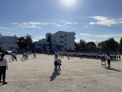 一回目の今日は、さわやかな秋晴れの下で、朝の時間を使って開会式の動きなどを確認しました。