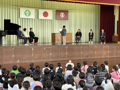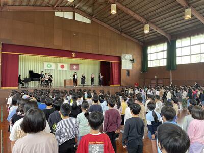 5月2日に離任式があり、昨年度の3月末をもって正善小を去られた先生方が来校されました。