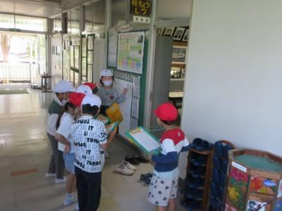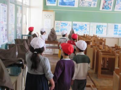 今日は、1・2年生が学校探検をしていました。2年生が1年生を案内し、特別教室等を見て回っていました。2年生は、すっかりお兄さん、お姉さんです。