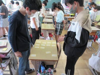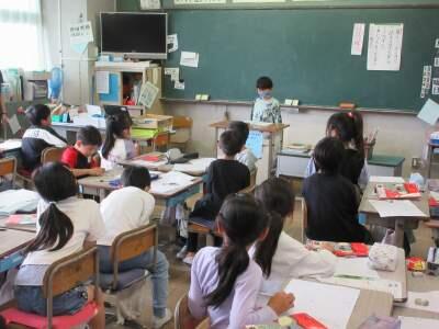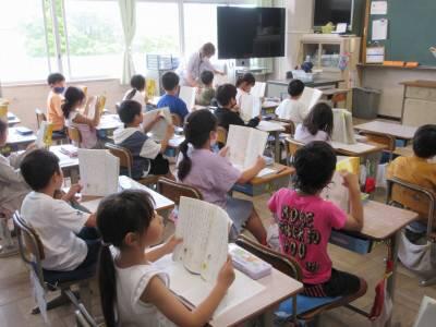 来月に硬筆競書会があるので、どの学年も硬筆の練習が始まっています。今日も1・2年生が硬筆の練習をしていました。6年生では、担任が入れ替わっての交換授業を行っていました。また、給食の時間に1年生の教室を訪れると、1年生が上手に給食の配膳をしていました。