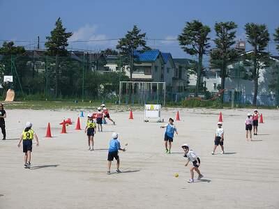 4年生は、ティーベースボールのゲームに向けて練習をしていました。