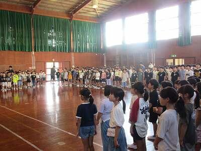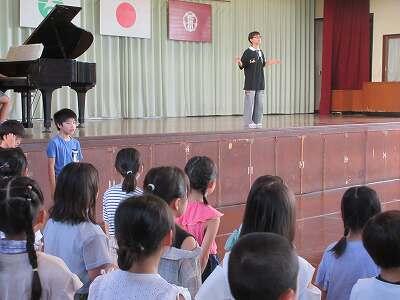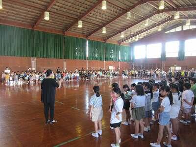 体育館に正善小の子どもたちの元気な歌声が響き渡りました。