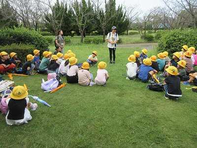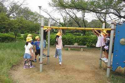 公園では、遊具で遊んだり、野原で昆虫やカエルなどを探したりと楽しい時間を過ごしていました。