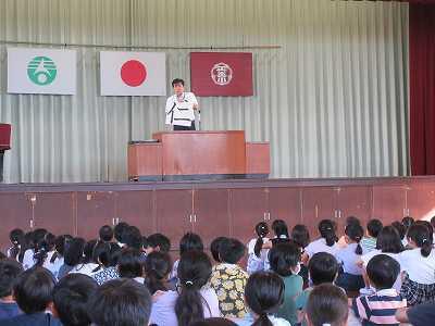 10月の全校朝会がありました。校長先生からは、『仁』という言葉から、相手を思いやる心の大切にさについてお話がありました。