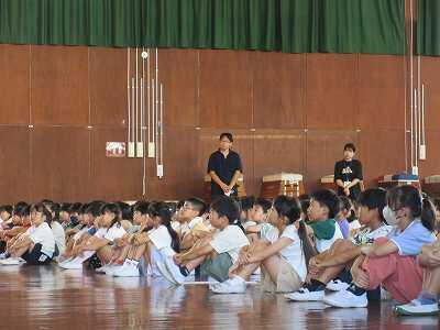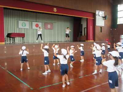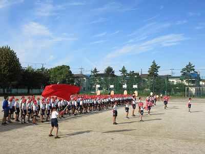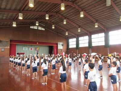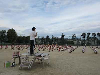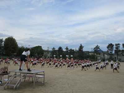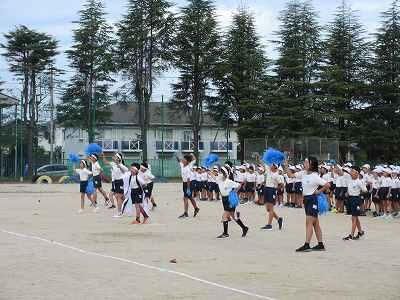今日は業前時間から1時間目にかけて、運動会の全体練習を行いました。開会式、応援合戦、閉会式の練習を行いました。子どもたちの気持ちも盛り上がってきたようです。