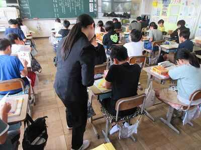 1年生では算数、6年生では国語の研究授業を行いました。一生懸命に指導する実習生に応えるよう、子どもたちも熱心に学習に取り組んでいました。