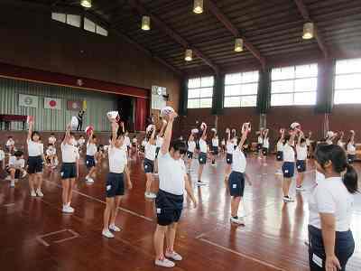 体育館では、5・6年生が運動会練習に取り組んでいました。