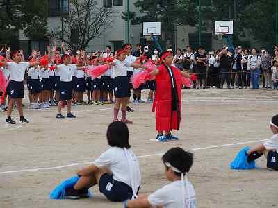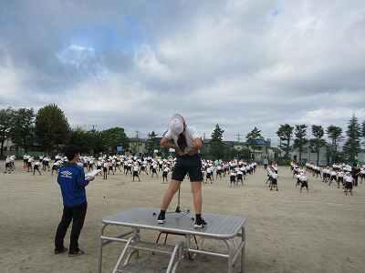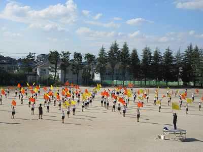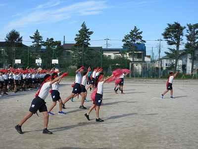 今日は、運動会で行う応援合戦の練習をしました。朝から子どもたちの元気な声が校庭に響き渡りました。