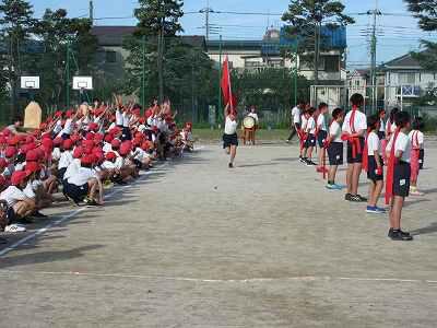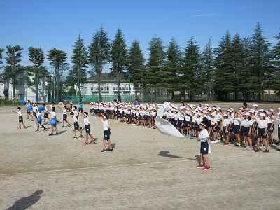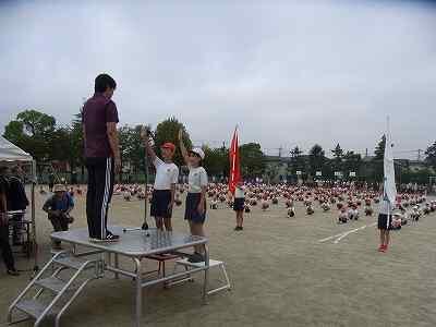 運動会の全体練習が始まりました。今日は、開会式の練習を行いました。