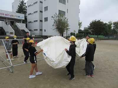 今日は雨が降ったりやんだりした1日でした。明日の運動会に向けて、雨が上がった時間を使って運動会の準備を行いました。明日は、元気な正善小の子どもたちが、本気・全力で取り組む運動会が見られそうです。