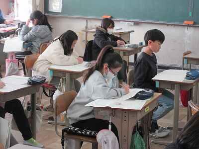 今日は、5・6年生が書きぞめ競書会に臨んでいました。一字一字に集中して書いていました。