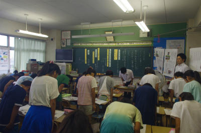 今年度、第1回目の校内授業研究会を行いました。6年2組鈴木教諭による国語科の研究授業でした。子どもたちは、一生懸命に自分の書いた原稿(パンフレット)を遂行する活動に取り組んでいました。