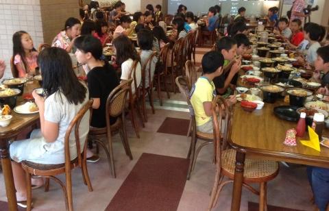 2日目の夕食です。少し疲れも見えますが、しっかりと食べて明日の最終日までがんばってほしいと思います。