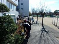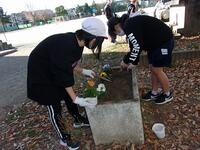 栽培委員会のみなさんが、学校の花壇にパンジーを植えてくれました。