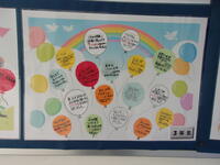 例年実施されている「スーパー元気さわやか集会」の代わりに、各学年、学級で考えを出し合い、掲示物にまとめました。