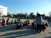「冬の交通事故防止運動」に関連して、夕方の歩行の仕方や自転車の乗り方について話をしました。
