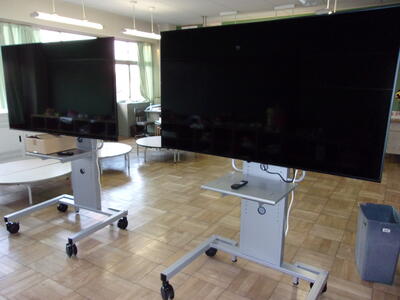 来年度から本格的にスタートする、GIGA スクール構想のために、大型モニターが設置されました。