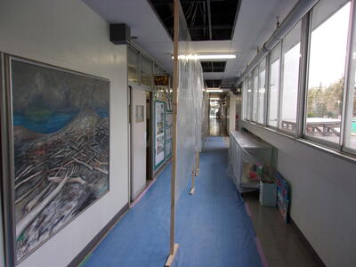 今日から2月末まで、家庭科室水道管の工事のために、職員室前廊下の通行にご不便をおかけします。