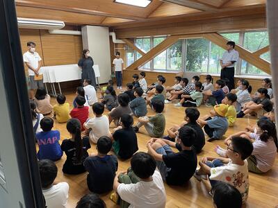 (↓開校式は、当日の時間短縮、暑さ対策のため、昨日の放課後に校舎内で行いました。)