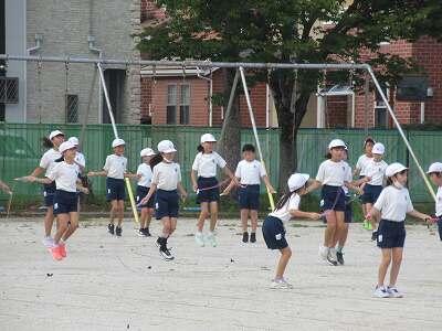 今日の朝の活動はフレッシュタイムでした。学年でそれぞれの運動に取り組みました。まだまだ暑い日が続いてます。フレッシュタイムの後は、徐々に気温が上がり熱中症指数も上がったので、今日はこの後、運動ができなくなりました。子どもたちも涼しい秋が訪れることを待っていることでしょう。