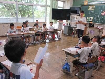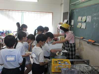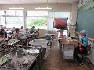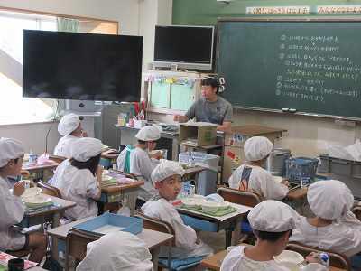 給食の時間には、初めての試みとなる「先生交換給食」を2年生と4年生で行いました。2年生と4年生の担任が、学年を入れ替わり給食の時間を過ごしました。いつもと違う先生、子どもたちに、子どもたちも先生も新鮮な気持ちで給食を食べたようです。