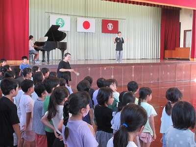 体育館に正善小の子どもたちの元気な歌声が響き渡りました。