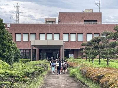 行田浄水場に到着しました。利根川の水を取水して飲めるようにきれいにするしくみを見学します。