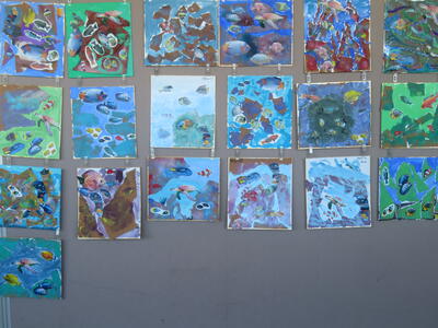 昨日の「海洋プログラム」の作品が飾ってありました。