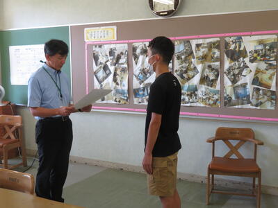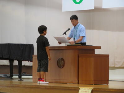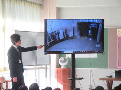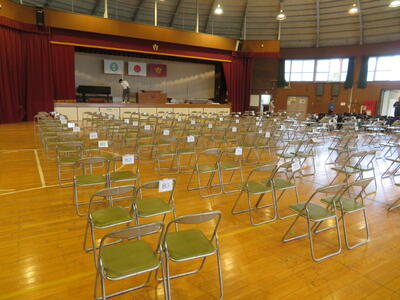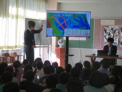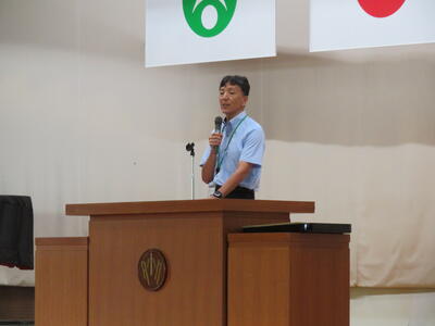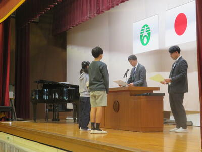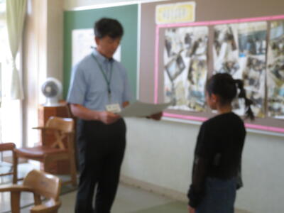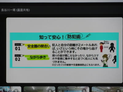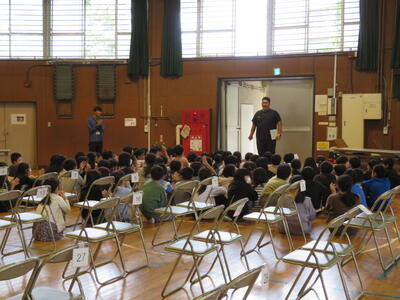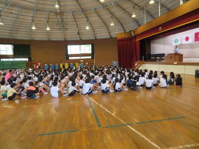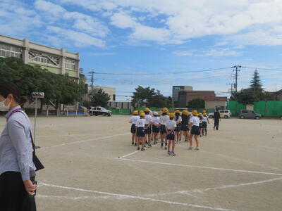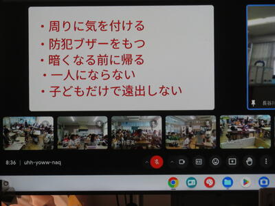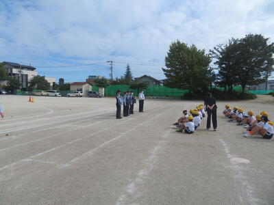 「児童の皆さんが素早く行動できていてよかったです。避難するときは『お・か・し・も・ち』(おさない、かけない、しゃべらない、もどらない、ちかづかない)を守りましょう。そして、『一人の時』『トイレにいるとき』『給食のとき』など不審者が侵入した時の、もしもの時の心の準備をしておきましょう。どこにドアがあるかなど学校のことをよく知っておきましょう。そして、自分の命、他人の命も大切にしてください。」との話がありました。