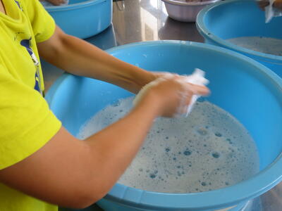 各教科では、実習生や先生方に向けて示範授業を行っています。