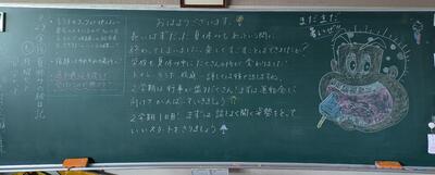各クラスの黒板などには、先生たちからのメッセージが書かれていました。