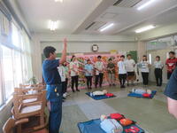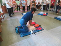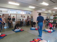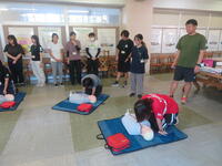 心肺蘇生(胸骨圧迫)や人工呼吸の方法、AEDの使用法などを学びました。
